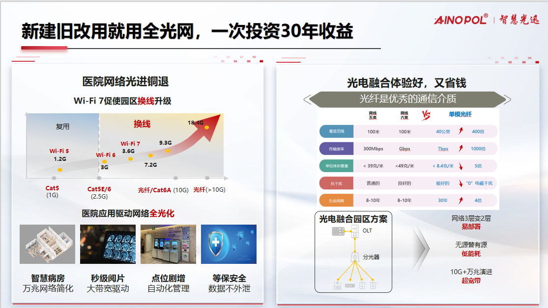 带宽不足:Wi-Fi 6/7、4K/8K影像传输、智慧病房等应用需万兆甚至更高带宽支撑。